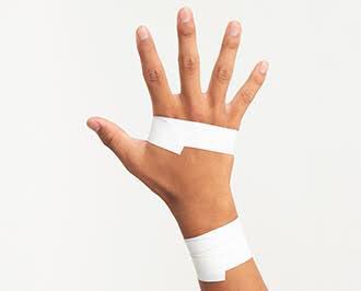 手首のテーピングには非伸縮性のテーピングを使うのが一般的です。痛みの度合いによって巻き付ける際の力加減を変えることで固定具合を微調整することができます。