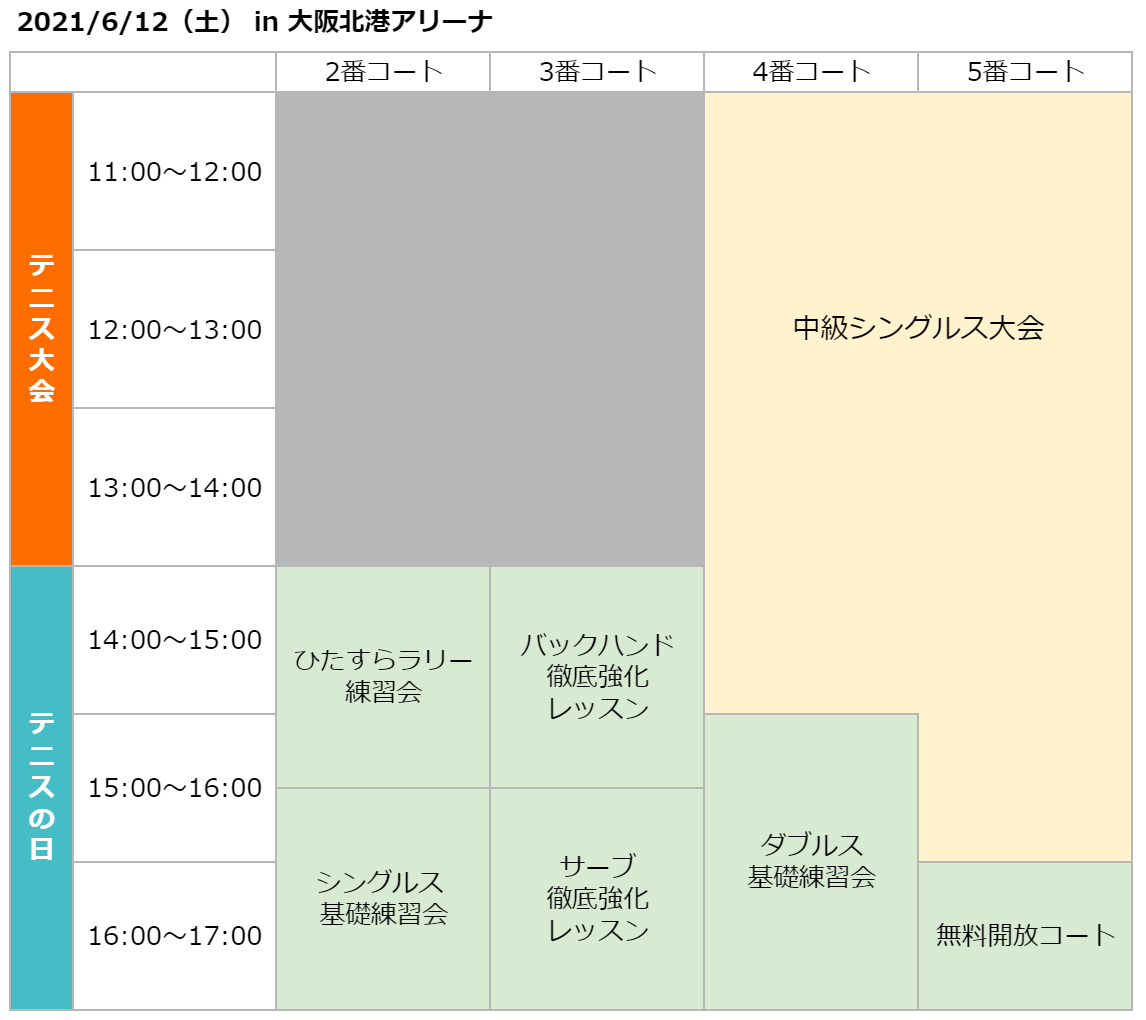 無料開放コートでしっかりウォームアップしてから、ミニシングルス大会で腕試しするのも良いかもしれないですね。
